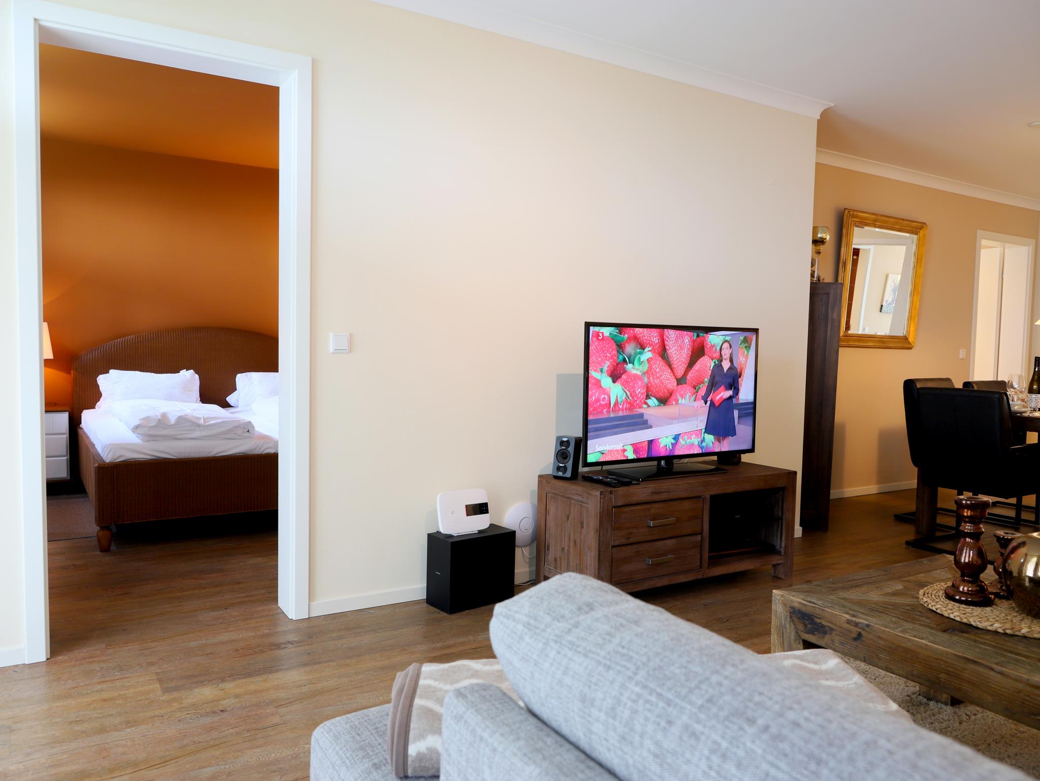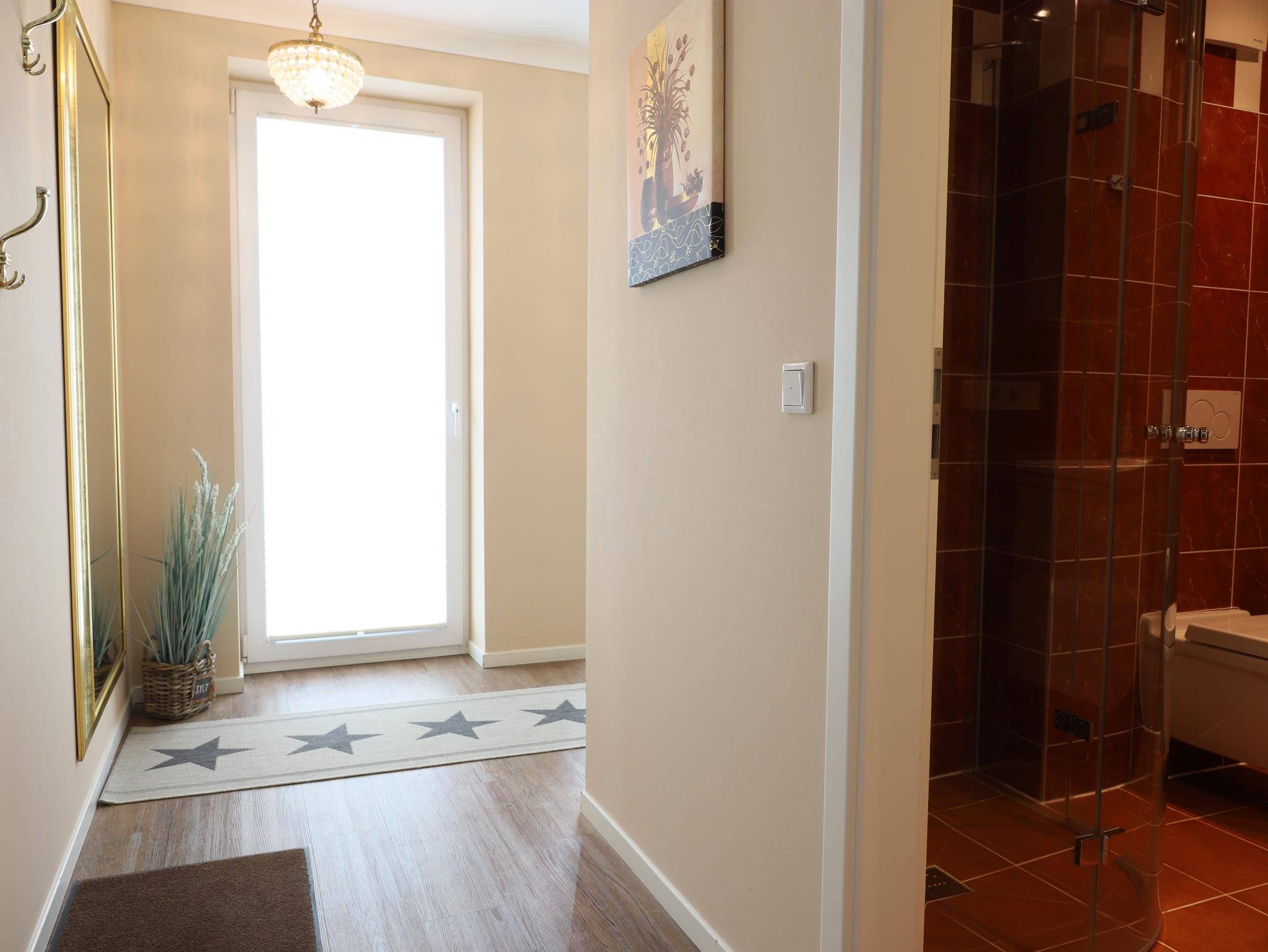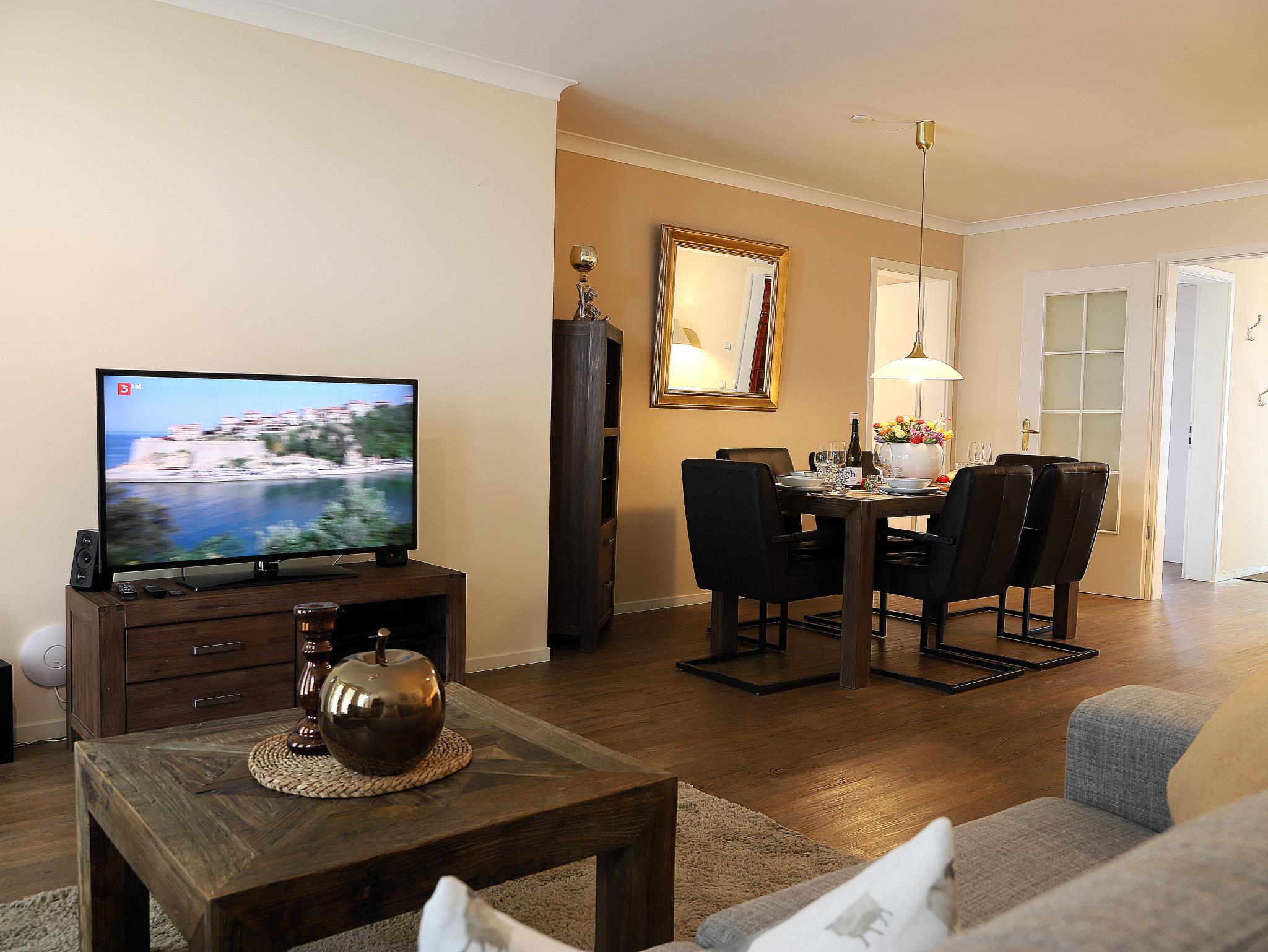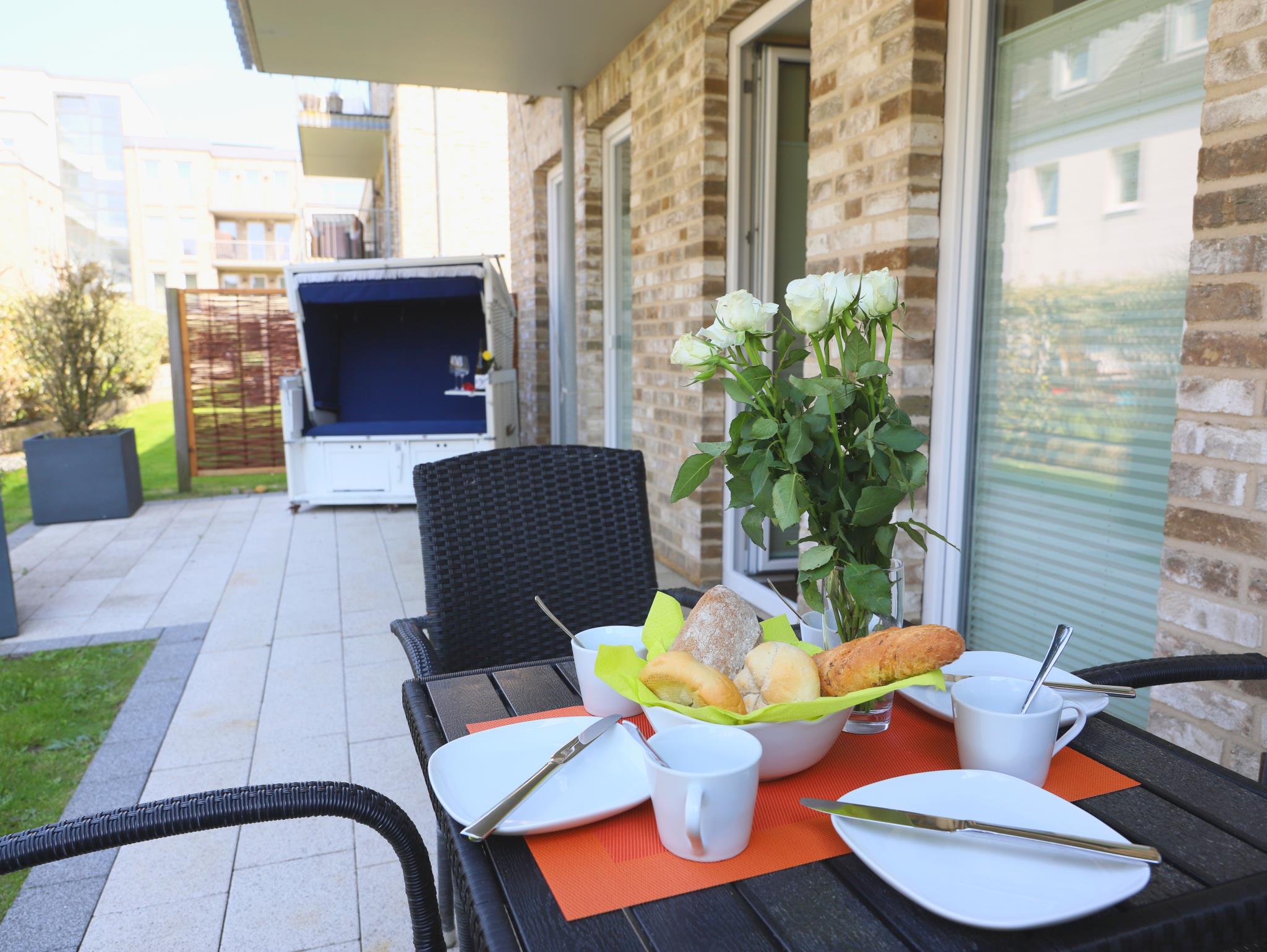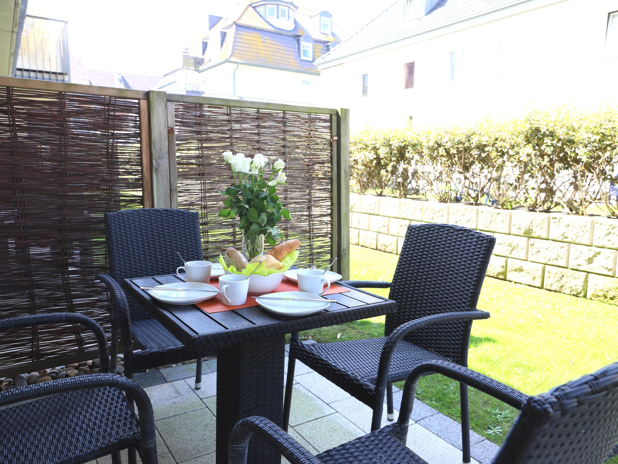 Exklusive, 105 m² große Ferienwohnung, barrierefrei, alles auf einer Ebene in direkter Strandnähe. Die Ferienwohnung ist mit viel Liebe hochwertig und gemütlich ausgestattet. Es erwartet Sie ein großzügiger Wohn-/Essbereich, zwei geräumige Schlafzimmer mit Doppelbetten. Weiterhin zwei anspruchsvolle Duschbäder, eines davon en suit und eine separate, hochwertig ausgestattete moderne Küche. Im Keller des Hauses befinden sich Waschmaschine und Trockner mit Münzzähler. Die Wohnung liegt in einer ruhigen Nebenstraße des Kurviertels und gehört zu den modernsten Neubauten. Die Terrasse mit bequemen Gartenmöbeln lädt zum Relaxen ein. Zur Wohnung gehört ein Pkw-Stellplatz in der Tiefgarage sowie ein Fahrradkeller. Das Meer, die Promenade, das Wellenbad und die Fußgängerzone sind in 5 Minuten Fußweg zu erreichen. Der Inselradweg befindet sich in unmittelbarer Nähe.