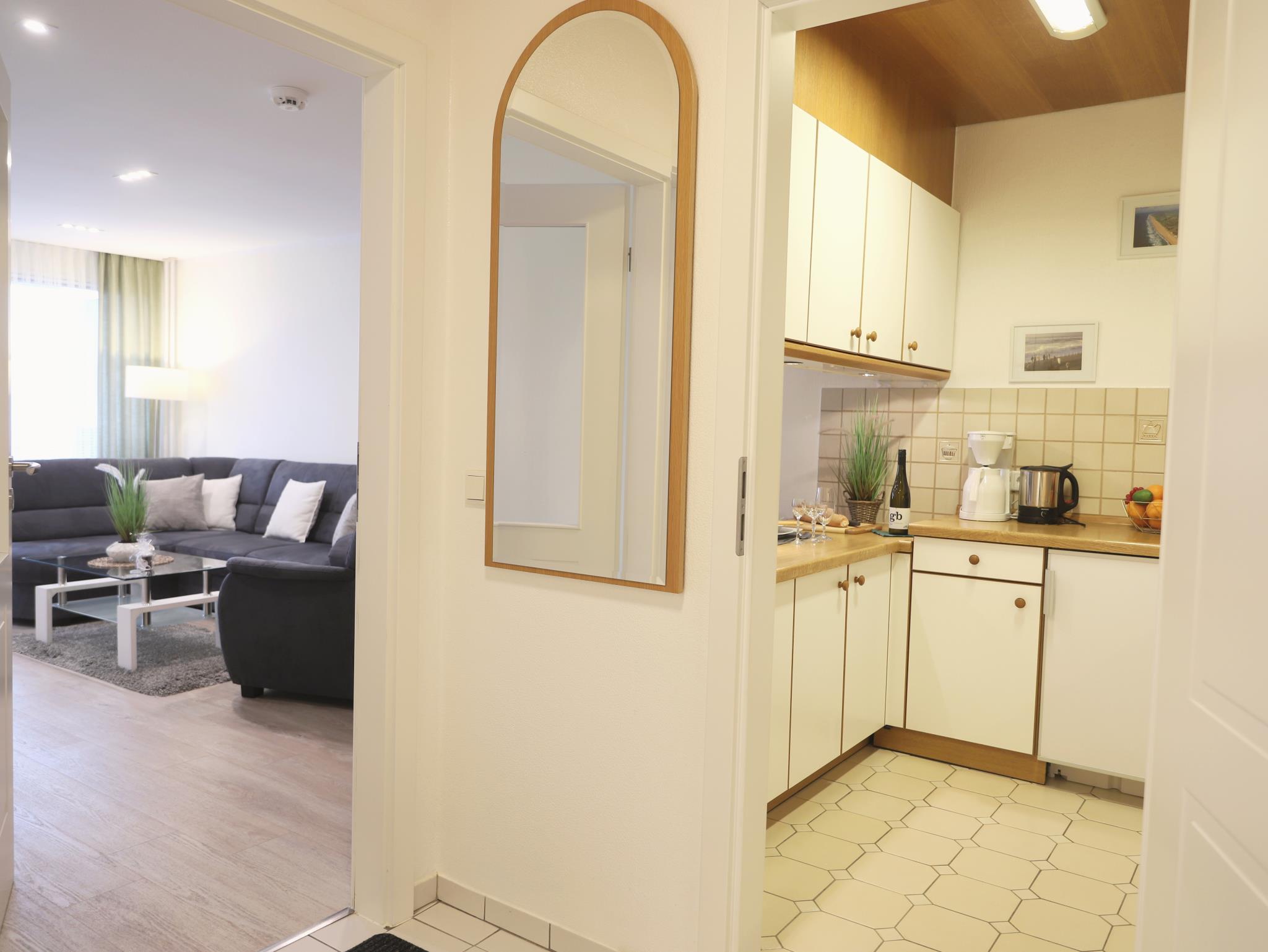 Das geräumige 2-Zimmer-Appartement verfügt über ein Wohnzimmer mit Küchenzeile und Esstresen, Geschirrspüler und Backofen sind ebenfalls vorhanden. Im Schlafzimmer befindet sich ein Doppelbett. Zu dem Appartement gehört ein Parkplatz. Haustiere dürfen Sie leider nicht mitbringen. Vom Balkon aus können Sie ab mittags die Sonne genießen.