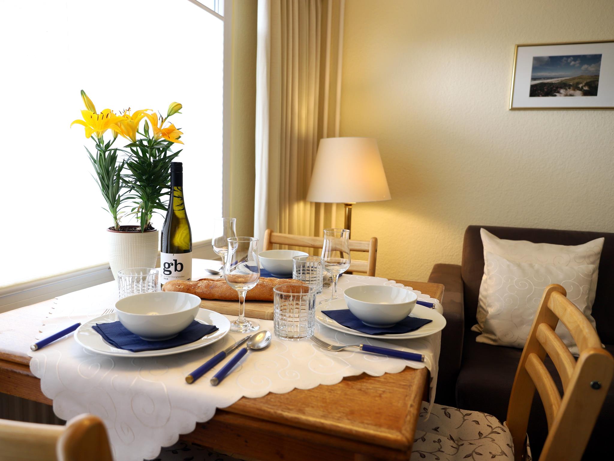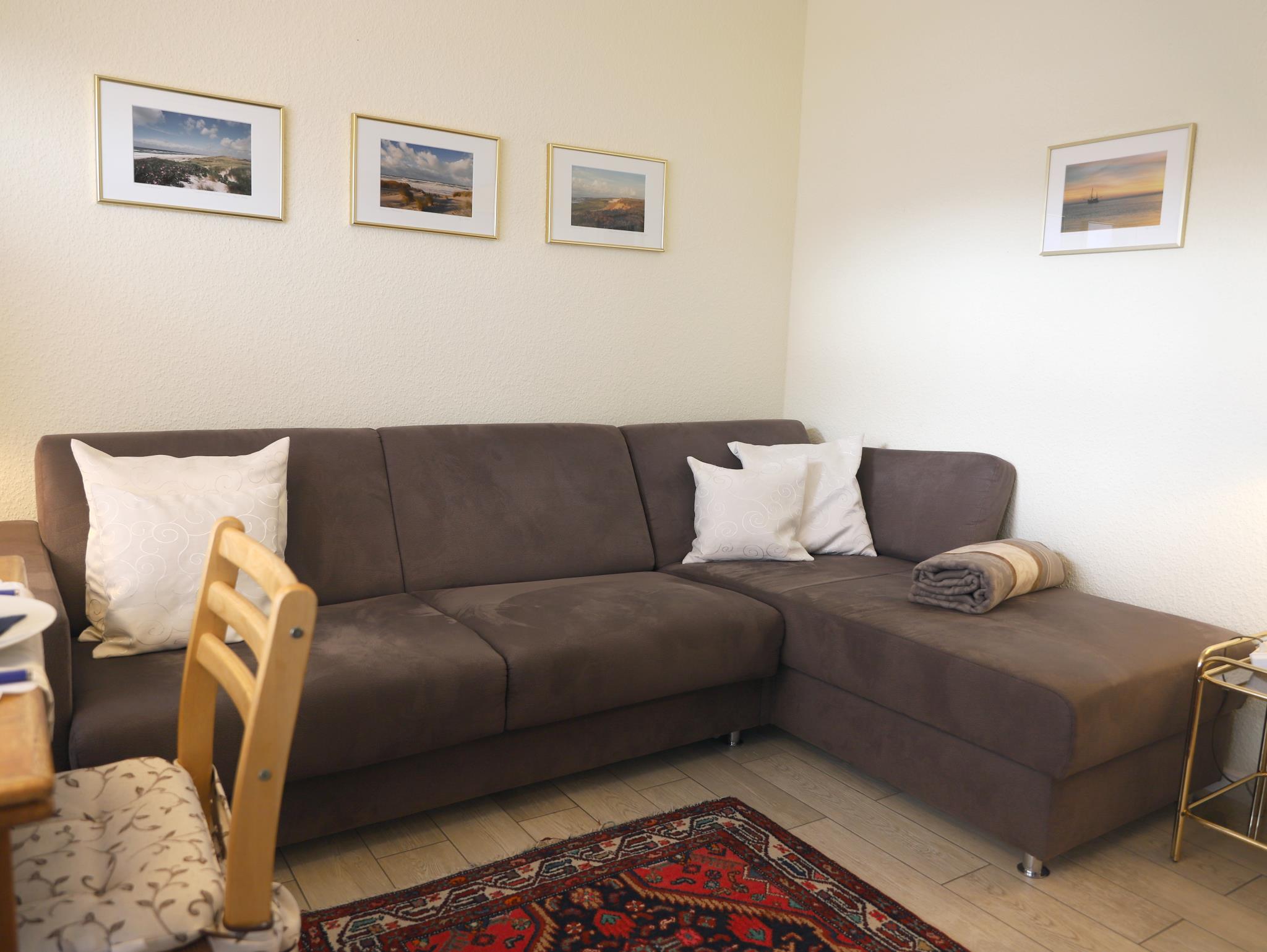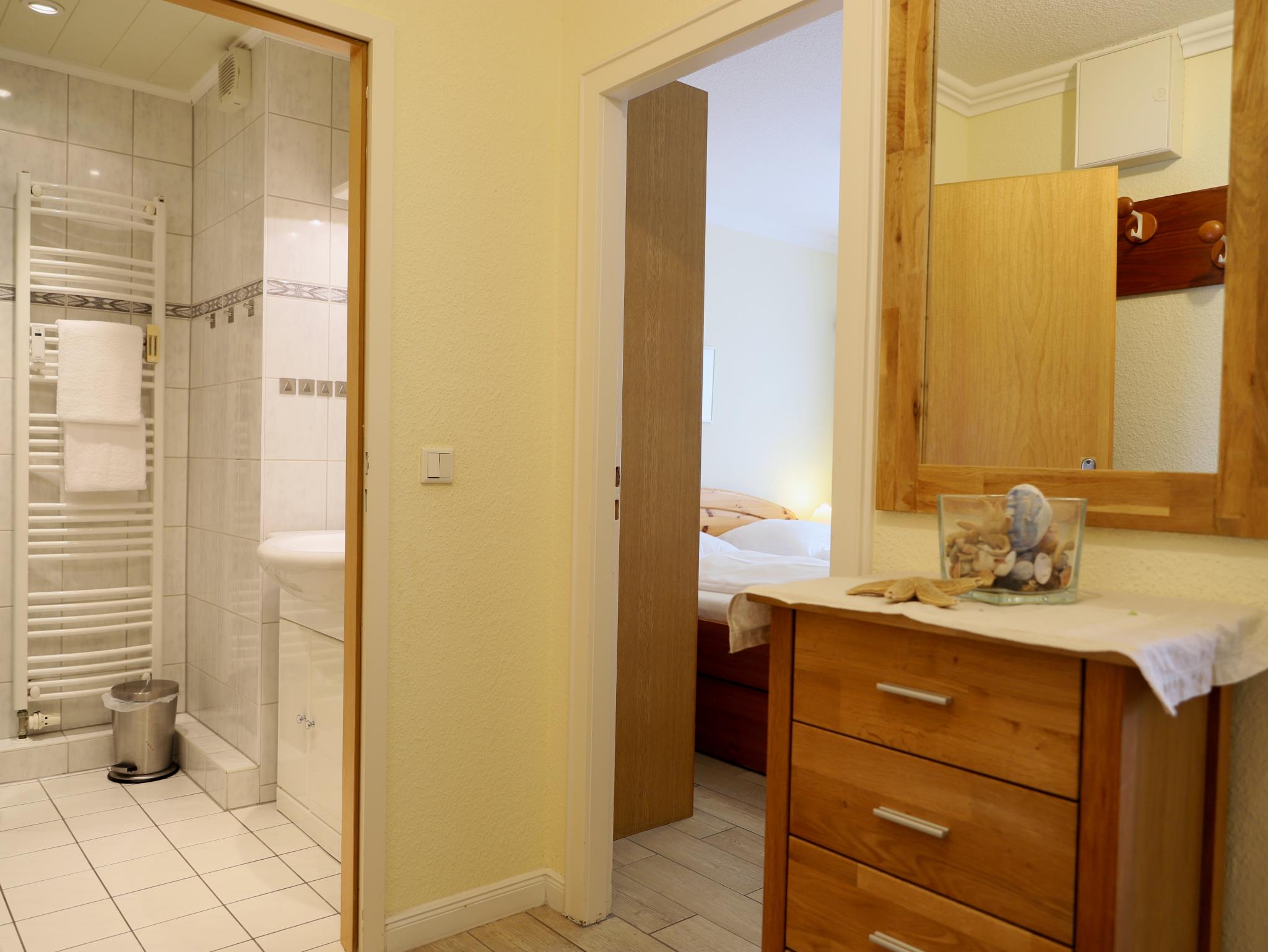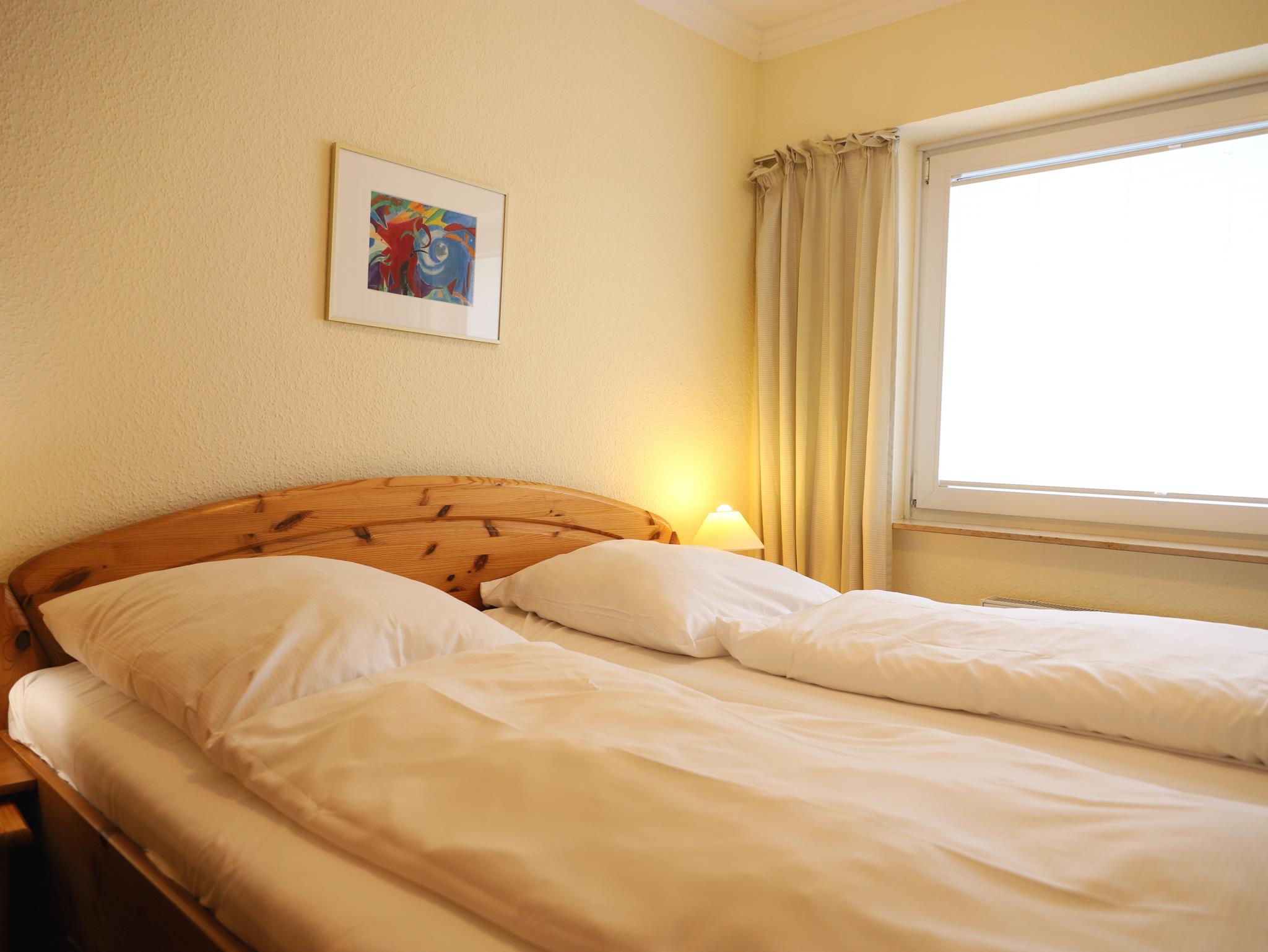 Das gemütliche 2-Zimmer-Appartement mit Balkon Richtung Süden wurde im März 2015 neu renoviert. Das Wohnzimmer ist mit Schlafcouch, Essecke, Kabel-TV und DSL/W`lan ausgestattet. Im Schlafzimmer befindet sich ein Doppelbett und TV. Weiterhin bietet die separate, modern eingerichtete Küche alle hauswirtschaftlichen Möglichkeiten. Das Duschbad mit WC ist von der Diele aus erreichbar. Im Haus befinden sich ein Schwimmbad, eine Sauna und ein Solarium für unsere Gäste. Die Nutzungsmöglichkeit des Wellnessbereiches (Schwimmbad, Sauna, usw.) im Haus Nordland wird individuell durch die Hausordnung geregelt. Die Nutzungsmöglichkeit bleibt jederzeit vorbehalten.