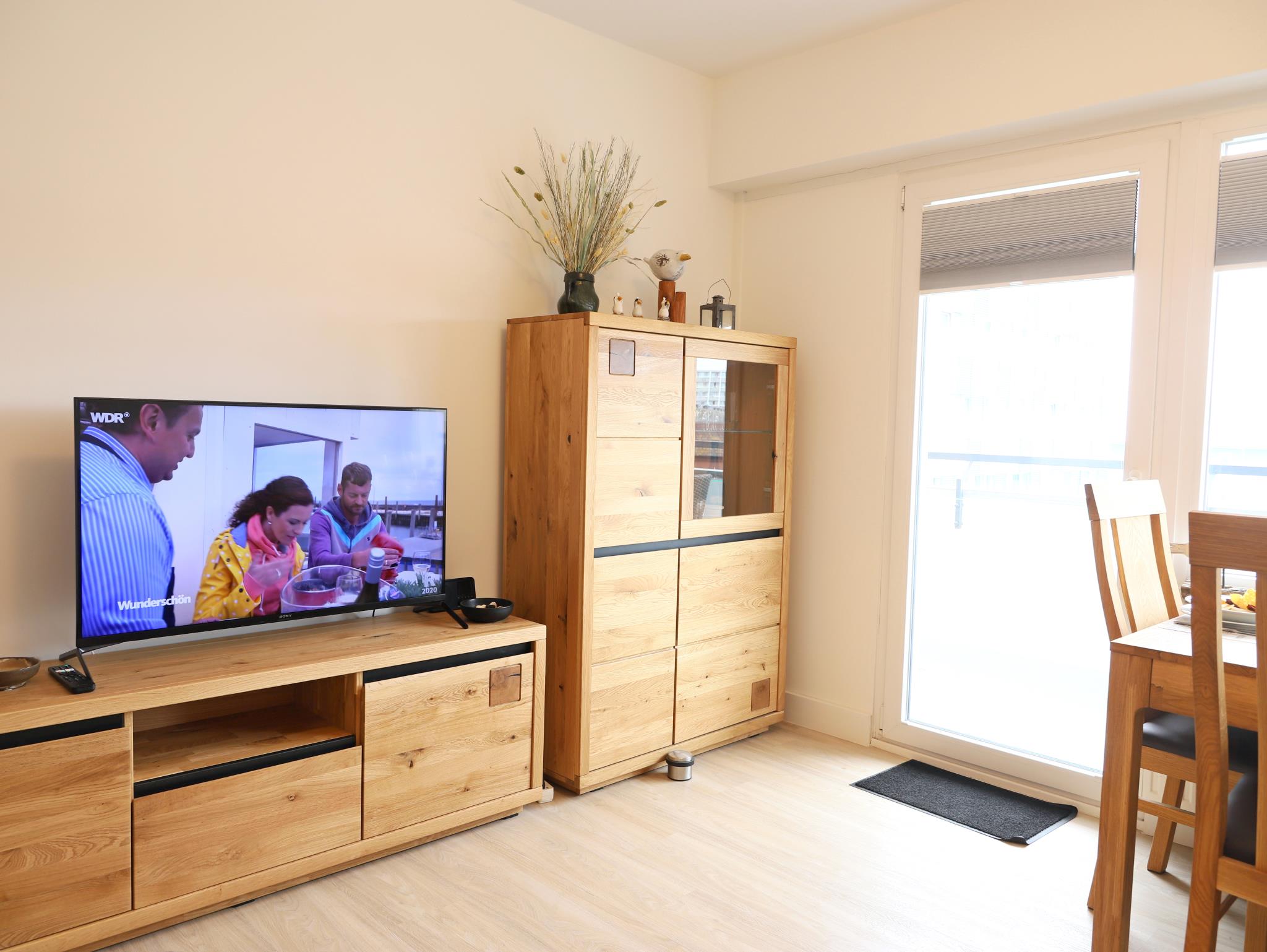 Gemütliches 2-Zimmer-Appartement mit Balkon. Das Wohnzimmer ist mit Schlafcouch, Essecke und Kabel-TV ausgestattet. Im Schlafzimmer befindet sich ein Doppelbett mit höhenverstellbarem Kopfteil. Weiterhin eine separate Küche und ein Badezimmer mit neuem Duschbad und WC. Im Haus befinden sich ein Schwimmbad, eine Sauna und ein Solarium für unsere Gäste. Die Nutzungsmöglichkeit des Wellnessbereiches (Schwimmbad, Sauna, usw.) im Haus Nordland wird individuell durch die Hausordnung geregelt. Die Nutzungsmöglichkeit bleibt jederzeit vorbehalten.