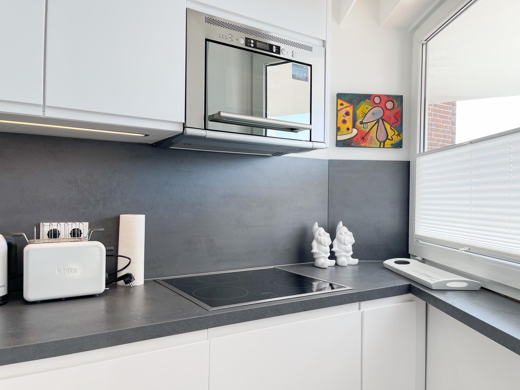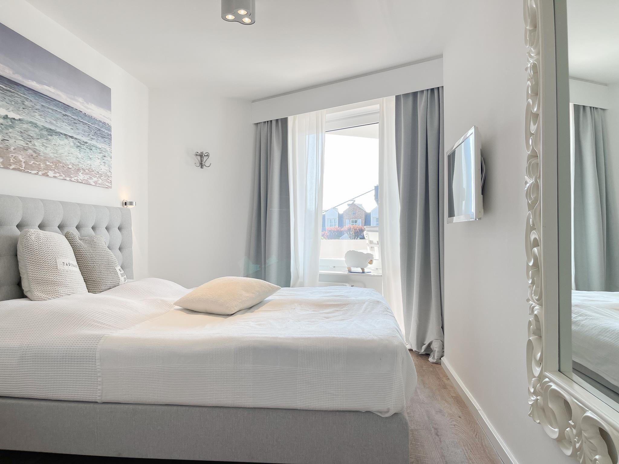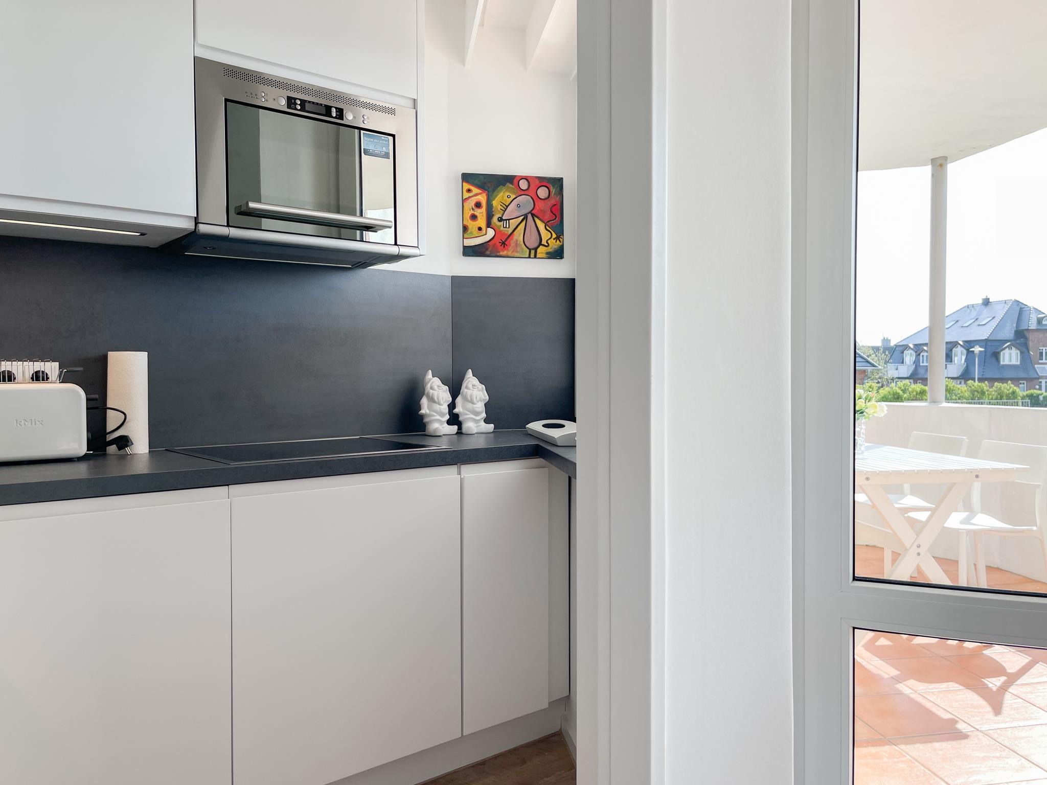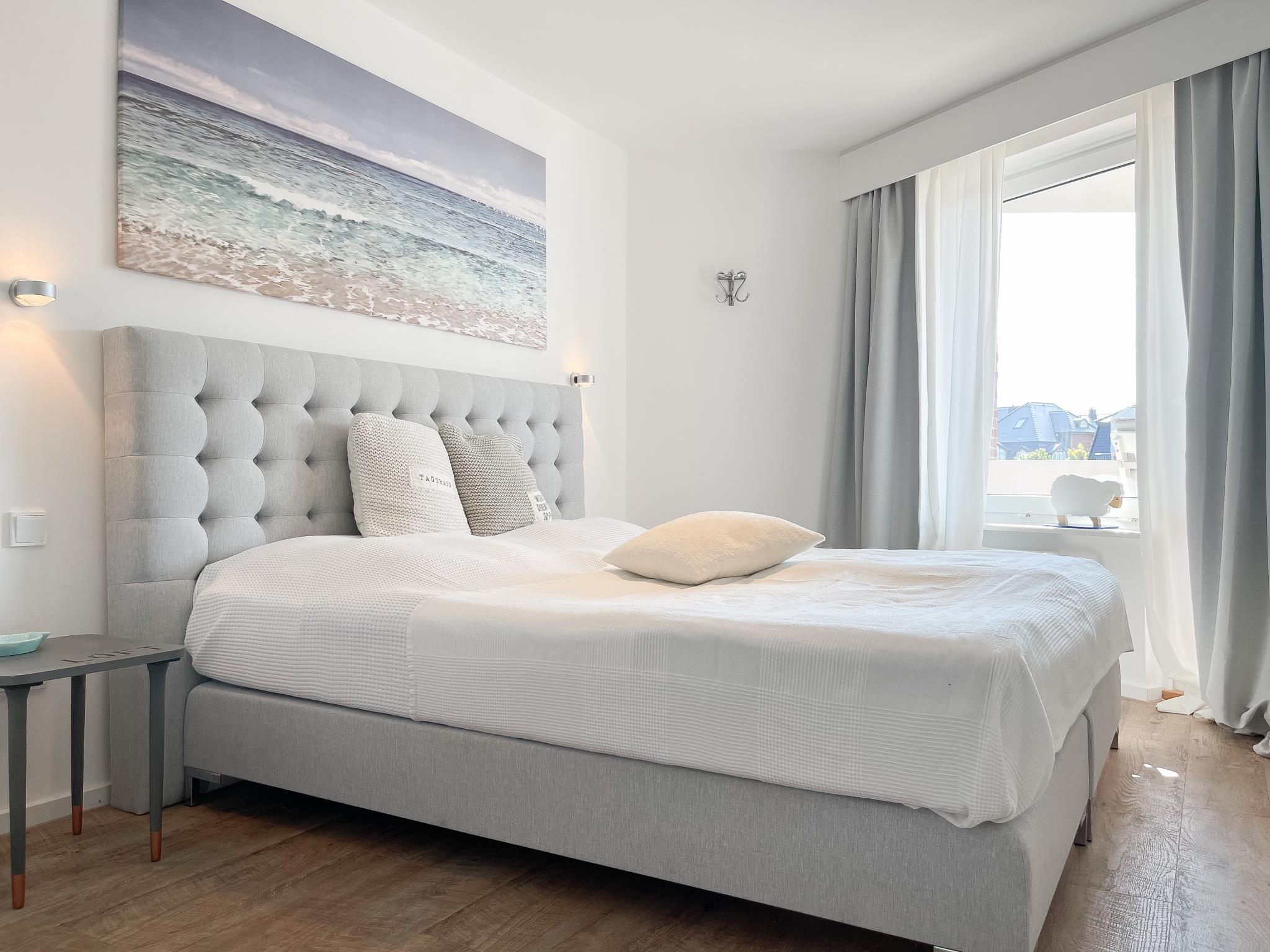 Die exklusive Wohnung mit Strandflair, vollständig renoviert und befindet sich im Hochparterre einer gepflegten , ruhig gelegenen Wohnanlage, nur 350 Meter vom Strand entfernt. Die Einrichtung ist stilvoll mit Liebe zum Detail und auf 2-3 Personen ausgerichtet. Viel Licht und zeitgemäßer Luxus sorgen für eine Atmosphäre zum Wohlfühlen. Es gibt ein Sofa mit Schlaffunktion, TV, Bluetooth Lautsprecher, Radio und WLAN. Der gemütliche Essbereich bietet ausreichend Platz für 4 Personen. Auf dem großen Westbalkon hört man die Nordsee und kann herrlich relaxen. Die neue Einbauküche ist bestens ausgestattet mit Spülmaschine und Mikrowelle. Das separate Schlafzimmer mit Boxspringbett, Einbauschrank und TV sowie das moderne Duschbad runden das Angebot ab. Waschmaschine und Trockner (Münzgeräte) stehen zur gemeinschaftlichen Nutzung zur Verfügung. Zu der Wohnung ist eine Parkgarage zugehörig ( bitte beachten Sie folgende Maße der Garage: Höhe 2m, Breite 2,4m, Länge 5,7m ). Hier kann man z.B. auch seine Fahrräder während des Aufenthaltes abstellen.