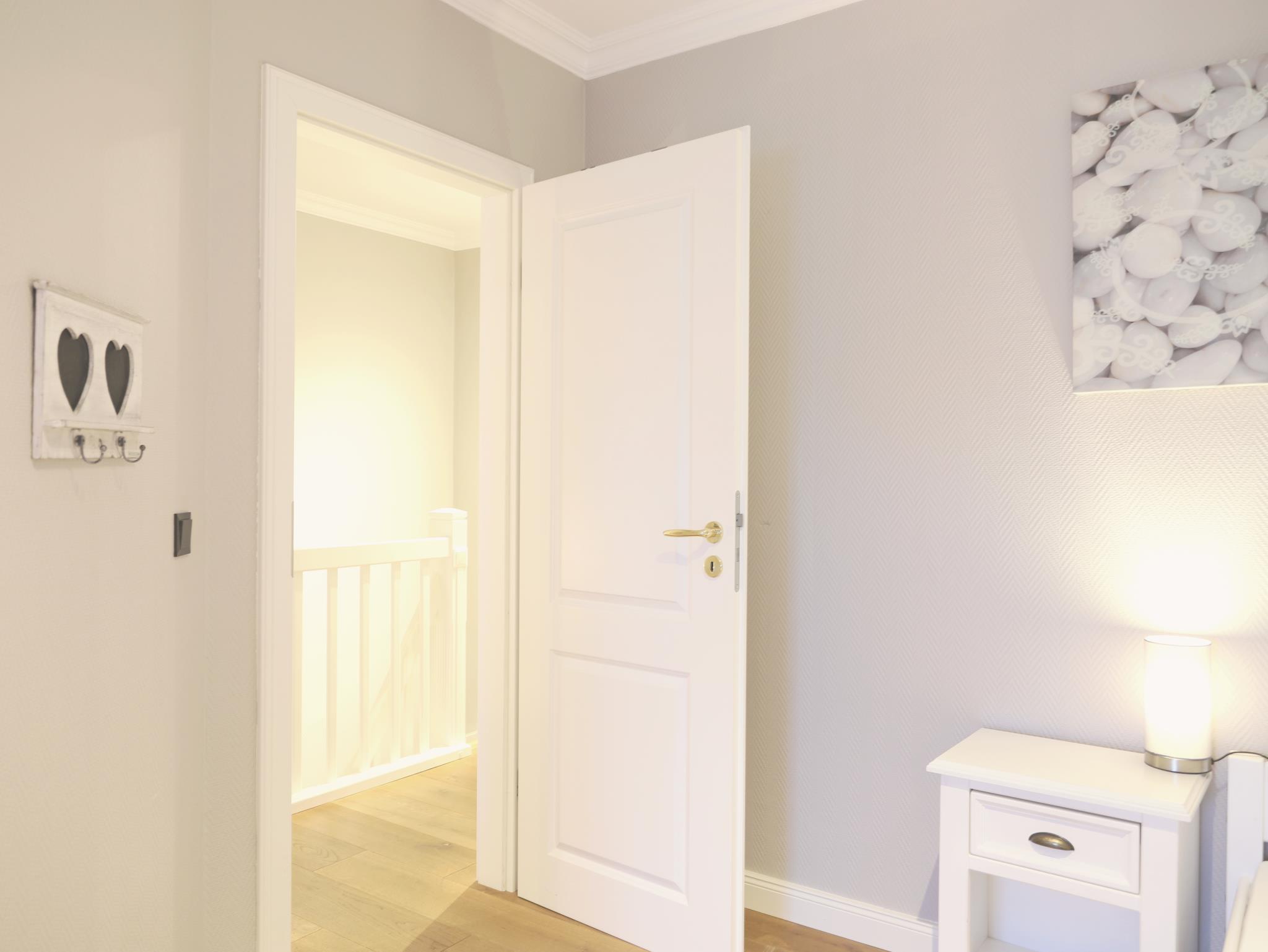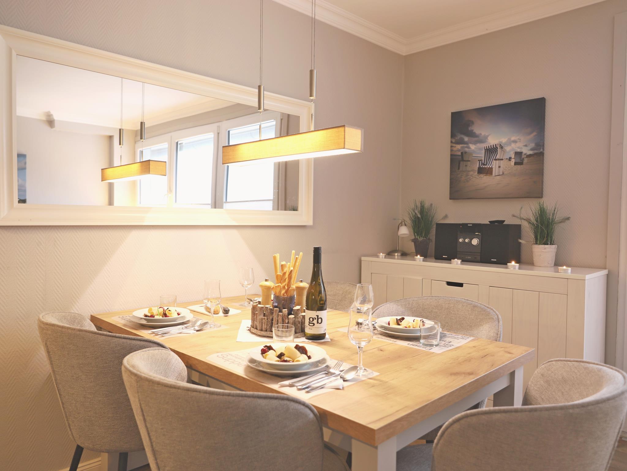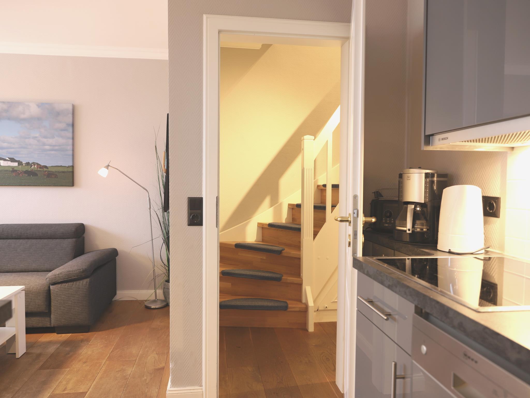 Die exklusive 3-Zimmer-Ferienwohnung im Herzen Westerlands wurde mordern und mit viel Liebe gemütlich eingerichtet. Es erwartet Sie ein großzügiger Wohn-/Essbereich mit Wohnlandschaft, Flat Screen TV, HiFi-Anlage und DSL-WLAN. Die hochwertige Markenküche ist mit einem Induktionsherd, Backofen, Geschirrspüler und Kühlschrank (incl. Gefrierfach) ausgestattet. Im Flur finden Sie einen großzügigen Einbauschrank. Das Badezimmer wurde 2021 komplett saniert und verfügt über hochwertige Tischlereinbauten, exklusive Sanitärobjekte, Regenwasserdusche und WC. Eine schöne Holztreppe führt Sie in das Obergeschoss. Hier befinden sich zwei geräumige Schlafzimmer. Eines mit einem Doppelbett, das andere Schlafzimmer mit einem Einzelbett und einem Tandembett, sowie mit je einem Flat Screen TV. Ebenfalls im Obergeschoss befindet sich ein großzügiges Anziehzimmer mit Raum für Ihre gesamte Urlaubsgarderobe. Die Wohnung liegt im 2. Obergeschoss, so dass Sie von dem Balkon aus einen schönen Blick über das Hotel Stadt Hamburg und Westerland haben. Der Balkon und die Außenfassade des Gebäudes wurden 2020 erneuert. Das Meer, die Kurpromenade (300 m), die Sylter Welle (250 m) und die Fußgängerzone (0 m) können Sie bequem zu Fuß erreichen. Eine Ferienwohnung zum Wohlfühlen und entspannen!
